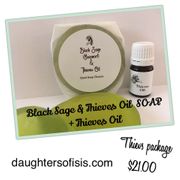 Black Sage & Thieves Oil soap with Thieves Oil package.